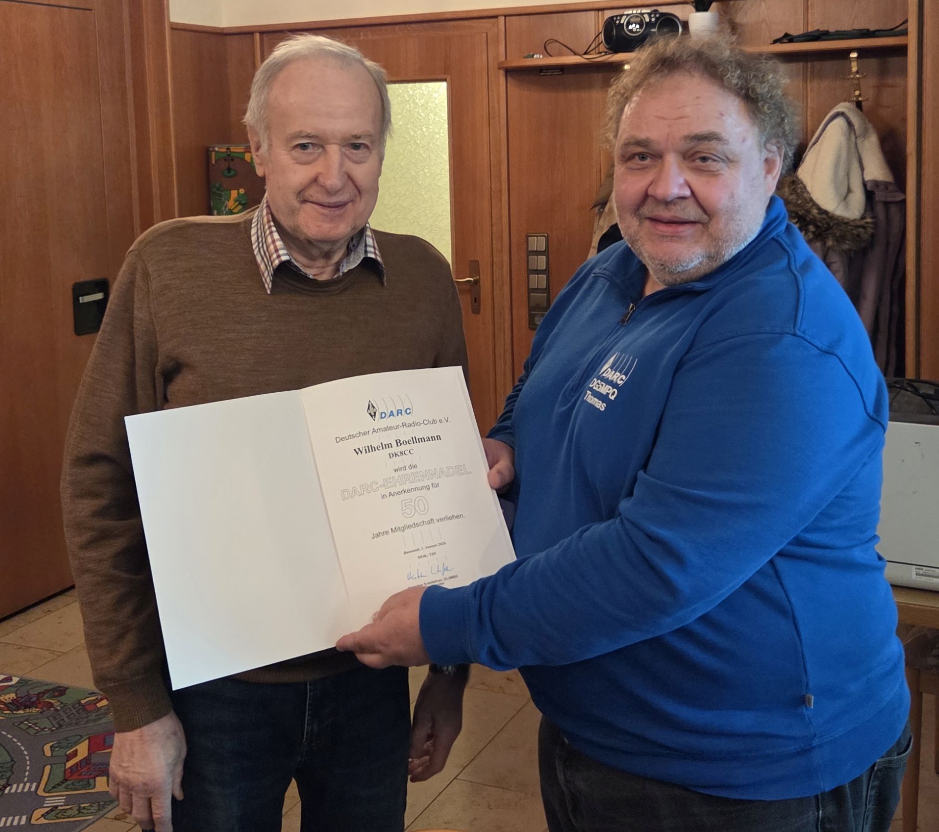 Im Rahmen der Jahreshauptversammlung wurde Wilhelm (Willi) Böllmann DK8CC am 06.03.2026 für die "50 jährige Mitgliedschaft" im Deutschen Amateur Radio Club e.V. geehrt.