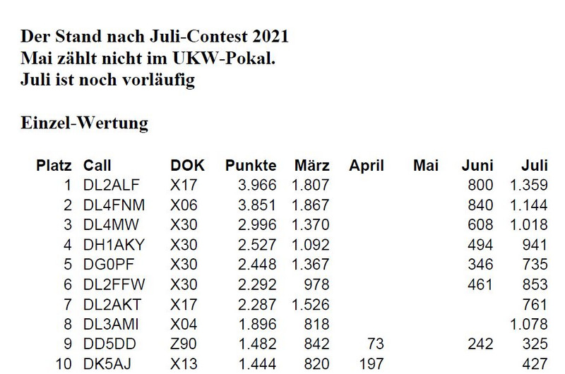 Aktuell liegen die Thüringer Ergebnisse des Juli-Contests 2021 vor: