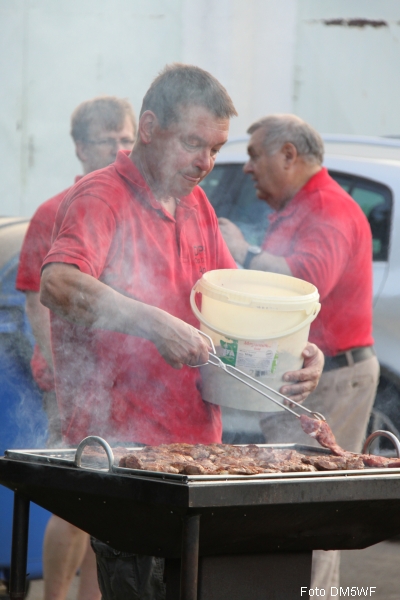 Für das leibliche Wohl war natürlich bestens gesorgt. Neben ausgezeichnetem Kuchen gab es von den XYL's der Contestmannschaft gefertigte zauberhafte Salate und leckere Steaks sowie Thüringer Würstchen. Ferner eine umfassende Auswahl der obligatorischen kommunikationsfördernden Getränke, was keine Wünsche offen ließ.
