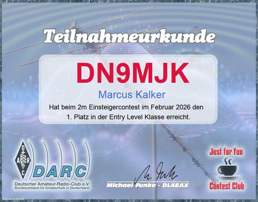 herzlichen Glückwunsch zu Deiner sehr erfolgreichen Teilnahme am Einsteigercontest im Februar 2026.