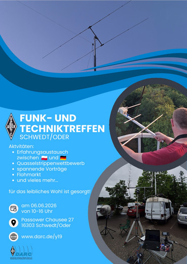 Am 06.06.2026 ist es endlich so weit: Von 10 bis 16 Uhr (mit Open End :)) laden wir euch herzlich zu unserem allerersten Funk- und Techniktreffen nach Schwedt/Oder ein.