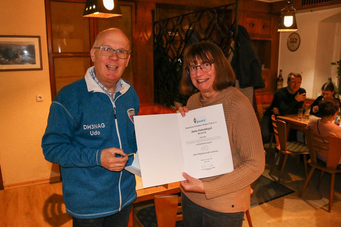 Udo Wolf, DH3NAG, 30 Jahre Vorstand des DARC Ortsverband Naila, B23, erhält die bronzene Ehrennadel des DARC