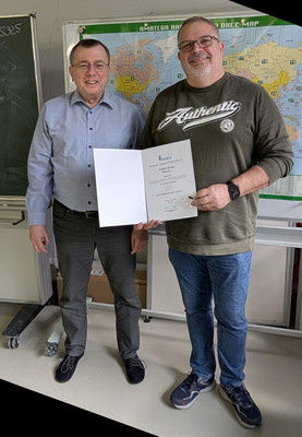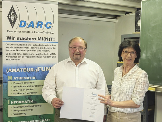 Zunächst wurde des verstorbenen Mitglieds Thomas B. gedacht, sodann die Jubilare für langjährige Mitgliedschaft geehrt: Dr. Rainer Lotz (DL4FBJ) erhielt Nadel und Urkunde für 50 Jahre Mitgliedschaft aus den Händen von Annette Coenen (DL6SAK); André Kunz (DD8AKA) gleiches für 25 Jahre Mitgliedschaft tags später durch Georg Komesker (DL1YAB). Dabei wurden auch ihre Verdienste für den Verein entsprechend gewürdigt. Zwei weitere Jubilare waren leider nicht anwesend.