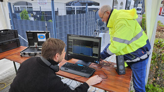 Gespräch am gelben Funkmobil.