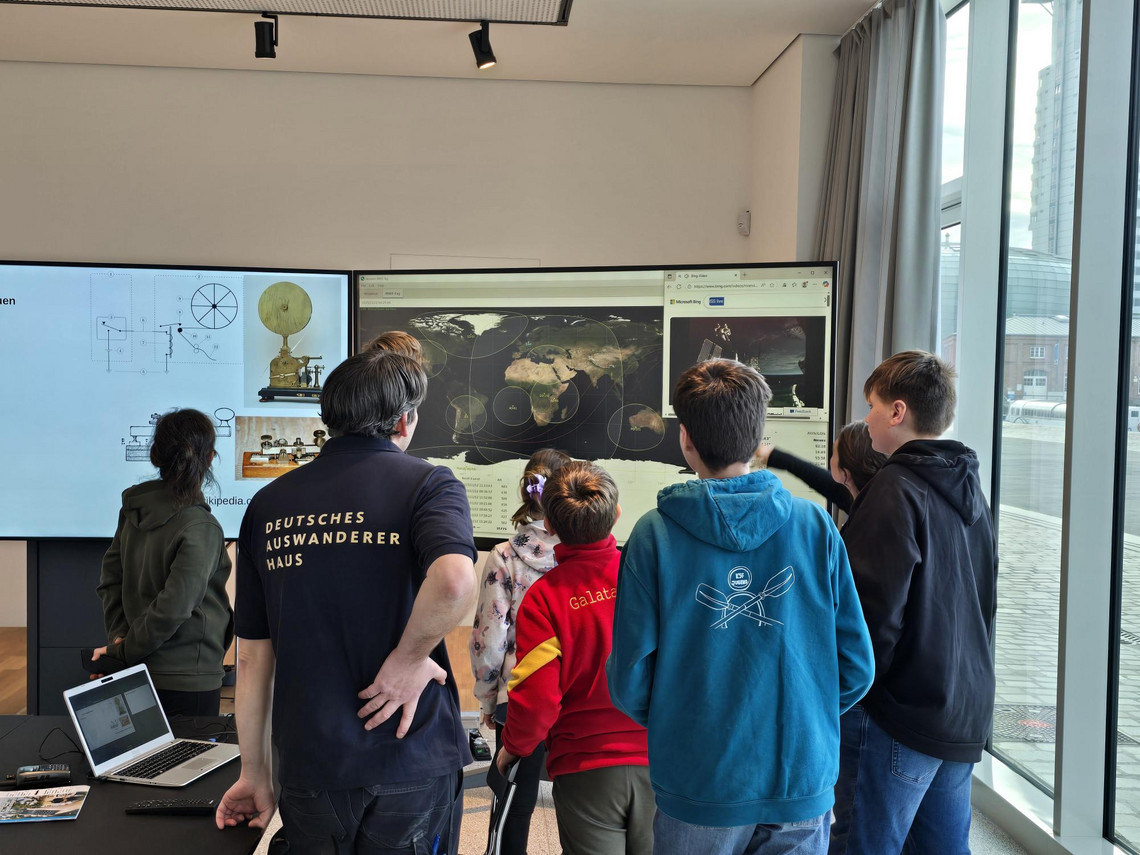 Zeitgleich fand im Deutschen Auswandererhaus Bremerhaven ein Workshop statt, der perfekt zur aktuellen Sonderausstellung „Verlockung Weltall – Auswandern auf Mond, Mars, Venus?“ passte. Die Jugendlichen der Oberschule am Goldbach erfuhren alles über Weltraumfunk, während Sie abwechslungsreiche Experimente zum Elektromagnetismus, Sprechfunk und Schmalband-Bildübertragung (SSTV) machten. Ein Highlight waren auch dort die Funkkontakte über das Bremer Relais DB0OZ; unter den Rufzeichen DK0MTV/Trainee in Bremen und DM1KF/Trainee in Bremerhaven, stellten die Jugendlichen unter der Leitung der Referenten Dr. Matthias Meckel (DD1MM) und Matthias Eilert (DM1KF) Verbindungen mit anderen Funkamateuren aber auch untereinander her.