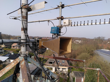 Das schöne Wetter hatte Ralf kurzfristig bewogen, oben auf dem Turm noch zwei Antennen, für 13cm und 3cm, aufzubauen und seinen IC 905 anzuschließen.