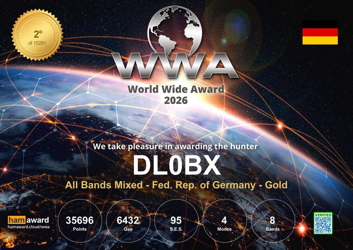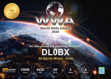 Das Team des N17, hat unter dem Clubcall DL0BX am WWA Contest teilgenommen und hat in der Mix-Wertung erste Plätze belegt.