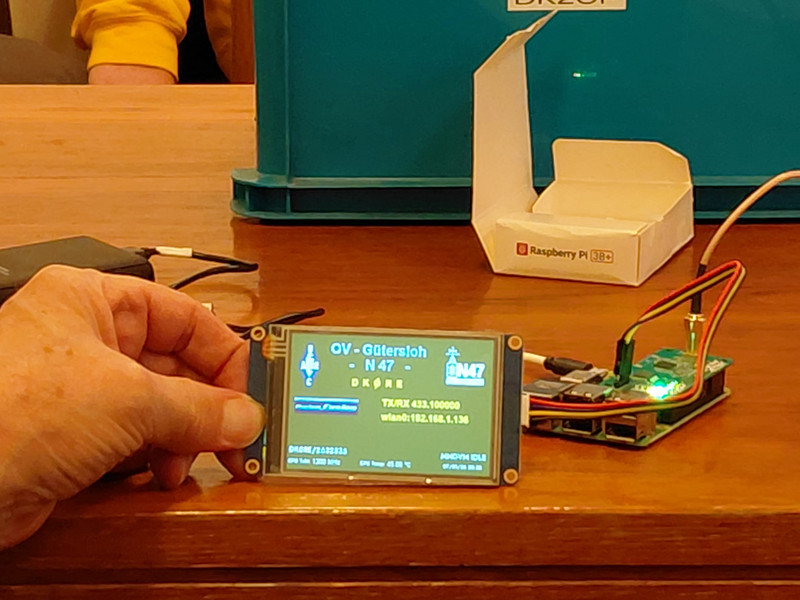 Am vergangenen Mittwoch wurde probeweise der erste von 3 Hotspots konfiguriert und in Betrieb genommen. Dank Bernd, DB5OET, zeigt das Display bereits viele Informationen des laufenden QSO´s und natürlich unser N47-Logo mit dem grünen Hintergrund analog zu unserer neuen Bekleidung an. Auch das Gehäuse wurde geliefert und kann jetzt bestückt werden.
