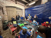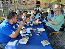 Das Abbauteam nach getaner Arbeit beim gemeinsamen Frühstück