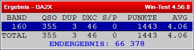 BAND QSO DUP DXC S/P POINTS AVG