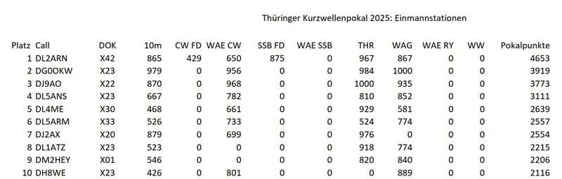 Mit der Auswertung des WAG Contest ergibt sich ein neuer Zwischenstand beim Thüringer Contestpokal Kurzwelle. Hier auf der Seite des HF-Referats unter End- und Zwischenstände Thüringer Contestpokal KW findet man die Ergebnisse für die Single-OP-, Multi-OP- und die OV-Wertung.