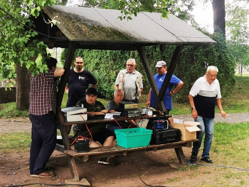 Am 27. August trafen wir uns dazu auf den Campingplatz Bottendorf, bauten unsere Zelte auf und errichteten eine Funkstation mit diversen Antennen. Neben einem warmen Mittagessen aus den holzbefeuerten Kessel, warteten die XYLs zum Kaffee mit Kuchen und Gebäck auf. Zum Abendessen gab es dann Thüringer Roster und Brätel.