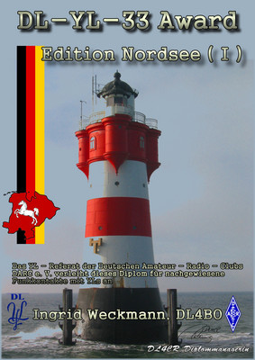 Zum Weihnachtsfest konnte das 500. Diplom der DL-YL-33-Award-Serie erstellt werden. Dieses ging an Gabi, DC6HY, für ihre Edition I (Nordsee).