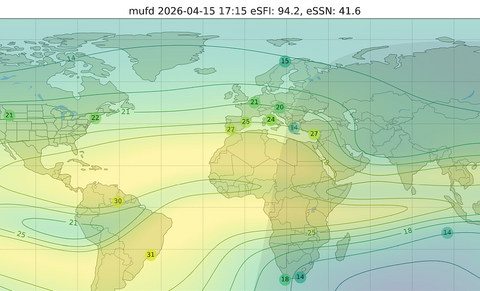 ZCZC 060725UT JAN24 QAM SFI153 SN121 KIEL A5 K(3H)1 SWS479 BZ1 BT3 HPI16 DST-7 NOAA48H FORECAST MID-LAT(K)2121222221222322 ➡️ MUF3000 MAX 30+(D) MIN 5(N) DATA BY DK0WCY SWPC/NOAA SANSA WDC/KYOTO FWBST-EU/DF5JL NNNN - Erläuterungen unter Funkwetter (PDF).