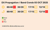 ZCZC 030600UT OCT25 QAM SFI167 SN161 eSFI96 eSSN44 KBORN A44 K(3H)5 SWS733 BZ-1 BT5 HPI64 DST-61 KP4CAST(24H) 43333444 ↘️ MUF3000 MAX21+(D) MIN5(N) DATA BY DK0WCY KC2G SWPC/NOAA SANSA WDC/KYOTO MET OFFICE UK GFZ POTSDAM FWBST RHB NNNN