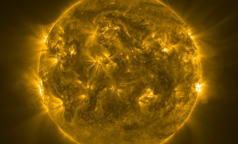 Abb.: Die Sonne hat aktuell wieder ein Aktivitätsmaximum im 11‑jährigen Schwabe‑Zyklus durchlaufen. (Bild: Solar Orbiter, ESA & NASA / EUI Team; Aufnahme: Oktober 2023)